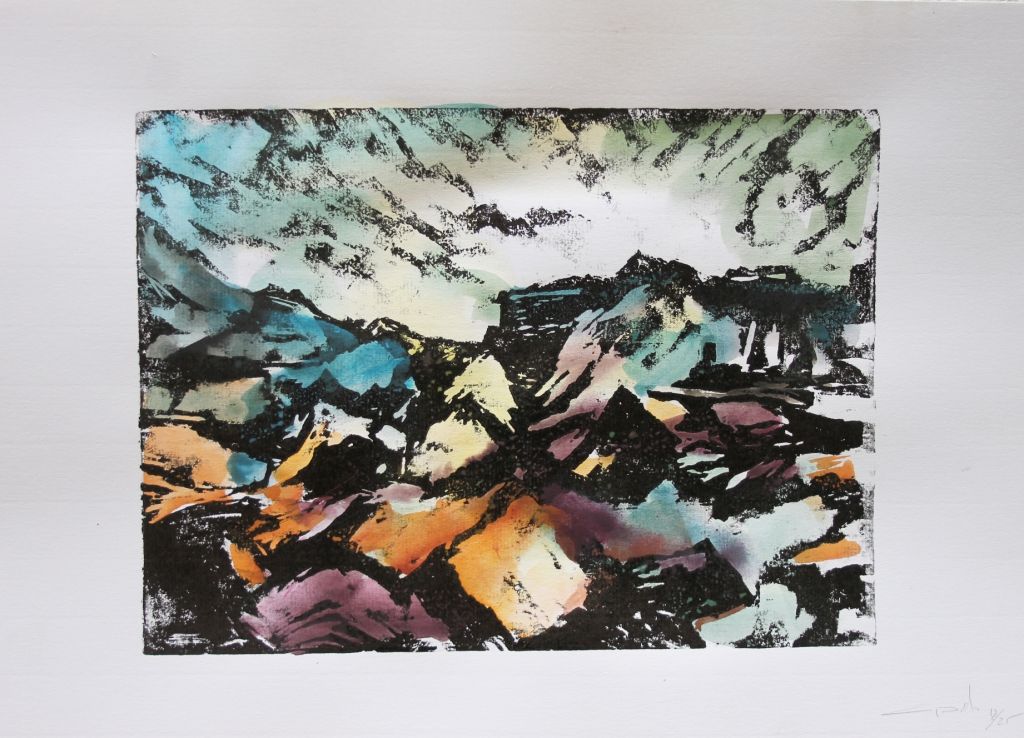 xilografia y acuarela
